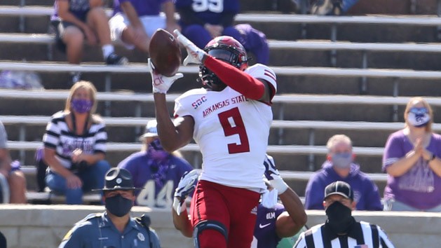 Adams had a career game, hauling in eight passes, including three for touchdowns. His third score of the game, a 17-yard reception from quarterback Layne Hatcher with just 38 seconds remaining in the fourth quarter, was the game winner as the Red Wolves came from behind to claim the win, 35-31.