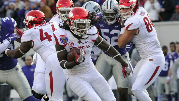 NOTES: Arkansas RB Alex Collins tied a school record with his 10th 100-yard game of the season. … Kansas State CB Morgan Burns set a school record for kickoff return yardage with 1,138 with a 32-yard return in the second quarter. … Razorbacks WR Dominique Reed was carted off the field in the second quarter after taking a hard hit and striking his head against the field. A website reported that Reed was smiling and moving as he was loaded into an ambulance for a trip to a hospital.