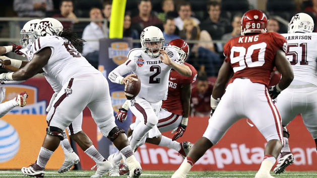 Manziel came out throwing on second drive, but Aggies had to punt. Oklahoma, taking over on its 6, nearly went the distance with a mammoth 18-play drive that again took it inside the Texas A&M 10.