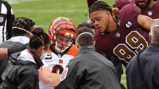 Every player on the Bengals sideline came out to check on the 2020 No. 1 overall draft pick as he was being attended to. As Burrow was loaded onto the cart, many Washington players also came over to pay their respects, including Burrow’s former Ohio State teammates Dwayne Haskins, Terry McLaurin and Chase Young.