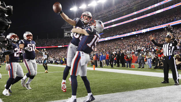Amendola, who caught seven passes for 84 yards, completed one for 20 yards and had a 20-yard punt return setting up the winning touchdown — became the fourth player to catch two fourth-quarter touchdown passes in a conference title game. Before his first touchdown, he caught a 21-yard pass from Brady on third-and-18.