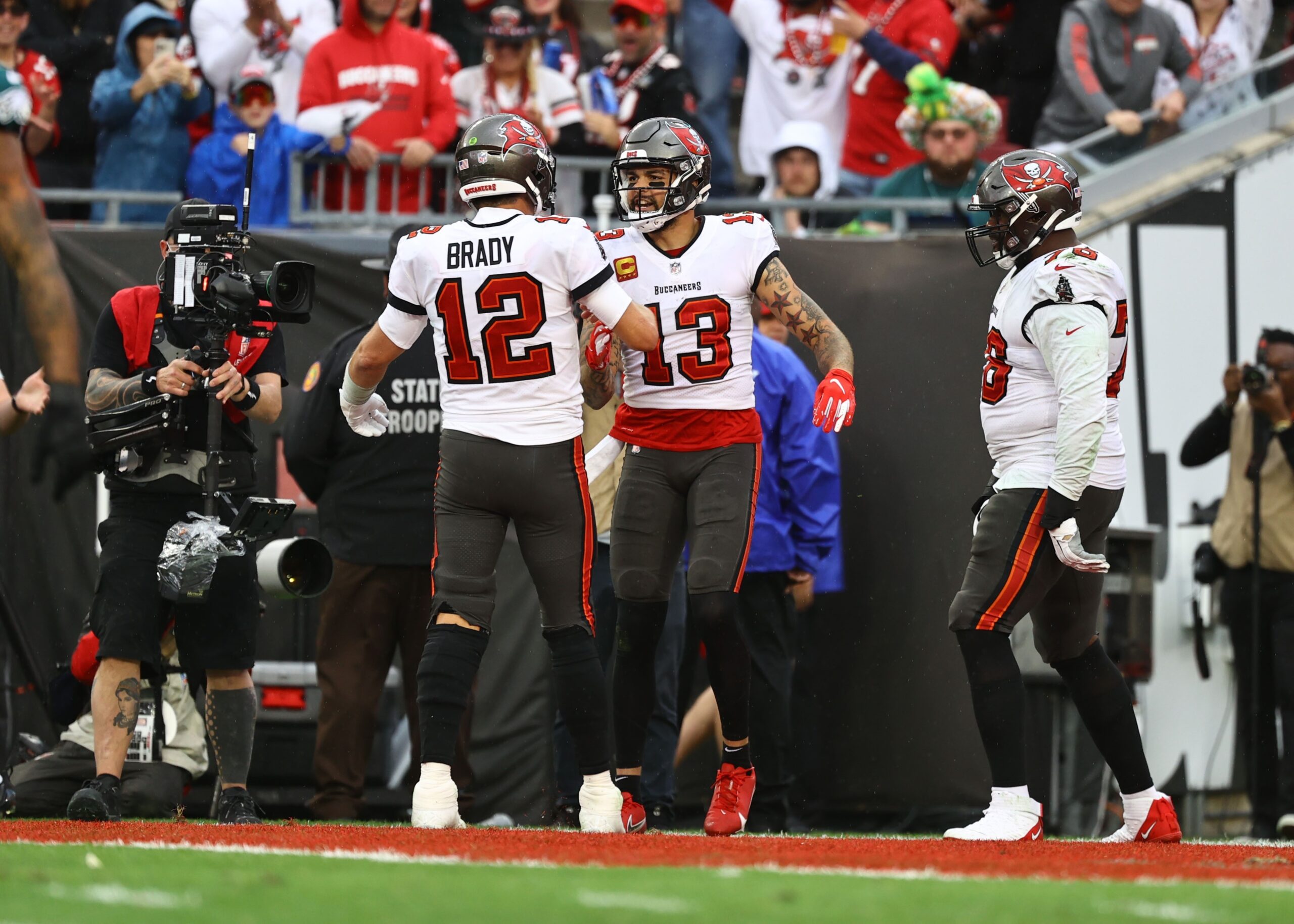 On offense: The Buccaneers had a pair of first quarter rushing touchdowns from Giovani Bernard and Keyshawn Vaughn, while Brady threw touchdown tosses to Mike Evans and Rob Gronkowski.