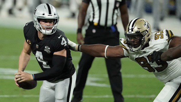 Carr won’t have to worry about Harris batting down any of his passes this time around. Harris, who sat out the loss to Falcons while in self-quarantine following close contact with someone who had contracted COVID-19, tested positive for the disease on Wednesday morning and will not play Sunday. He is third on the team with 2.5 sacks to go along with 15 tackles.