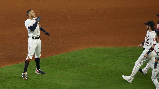 With Jose Altuve on first base following a one-out single, Correa lined a 3-2 fastball from Chapman (0-1) into the right-center field gap. Altuve rounded the bases and scored when Yankees right fielder Aaron Judge made his relay toss toward the middle of the infield. The subsequent throw home short-hopped catcher Gary Sanchez, allowing Altuve to score.