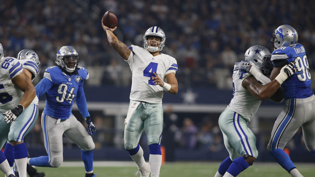 Cowboys rookie quarterback Dak Prescott passed for 212 yards and three touchdowns. Wide receiver Dez Bryant caught a pair of TD passes and threw another, and rookie running back Ezekiel Elliott rushed for 80 yards and two scores on 12 carries.