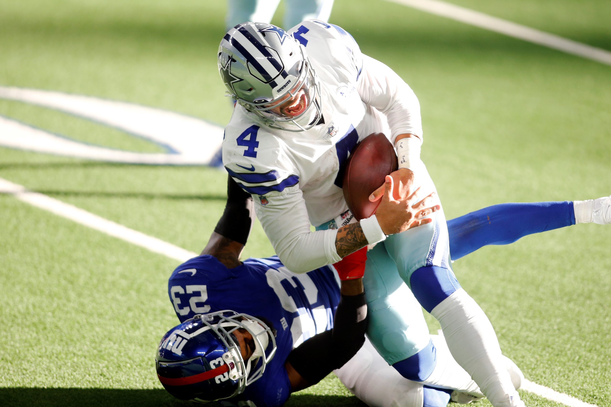 Prescott gained 9 yards on a called quarterback draw and was tackled by New York safety Logan Ryan.