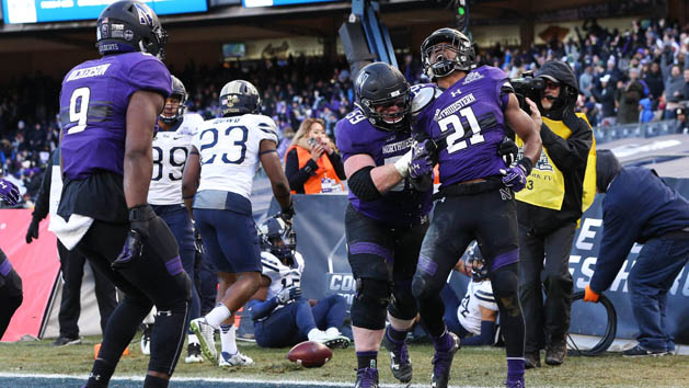 Jackson went 16 yards around right end, bouncing off a few tackles near the goal line, to score his second touchdown of the game, giving the Wildcats a 14-3 edge with 3:08 left in the half. Northwestern went 74 yards in eight plays for the score.