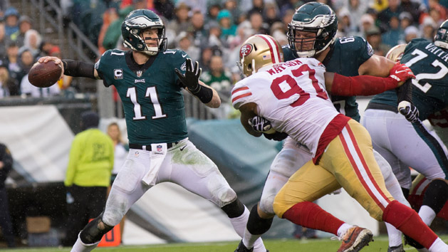 Wentz was 18 of 32 for 211 yards and now has tossed a franchise-record 19 touchdown passes through the first eight games.