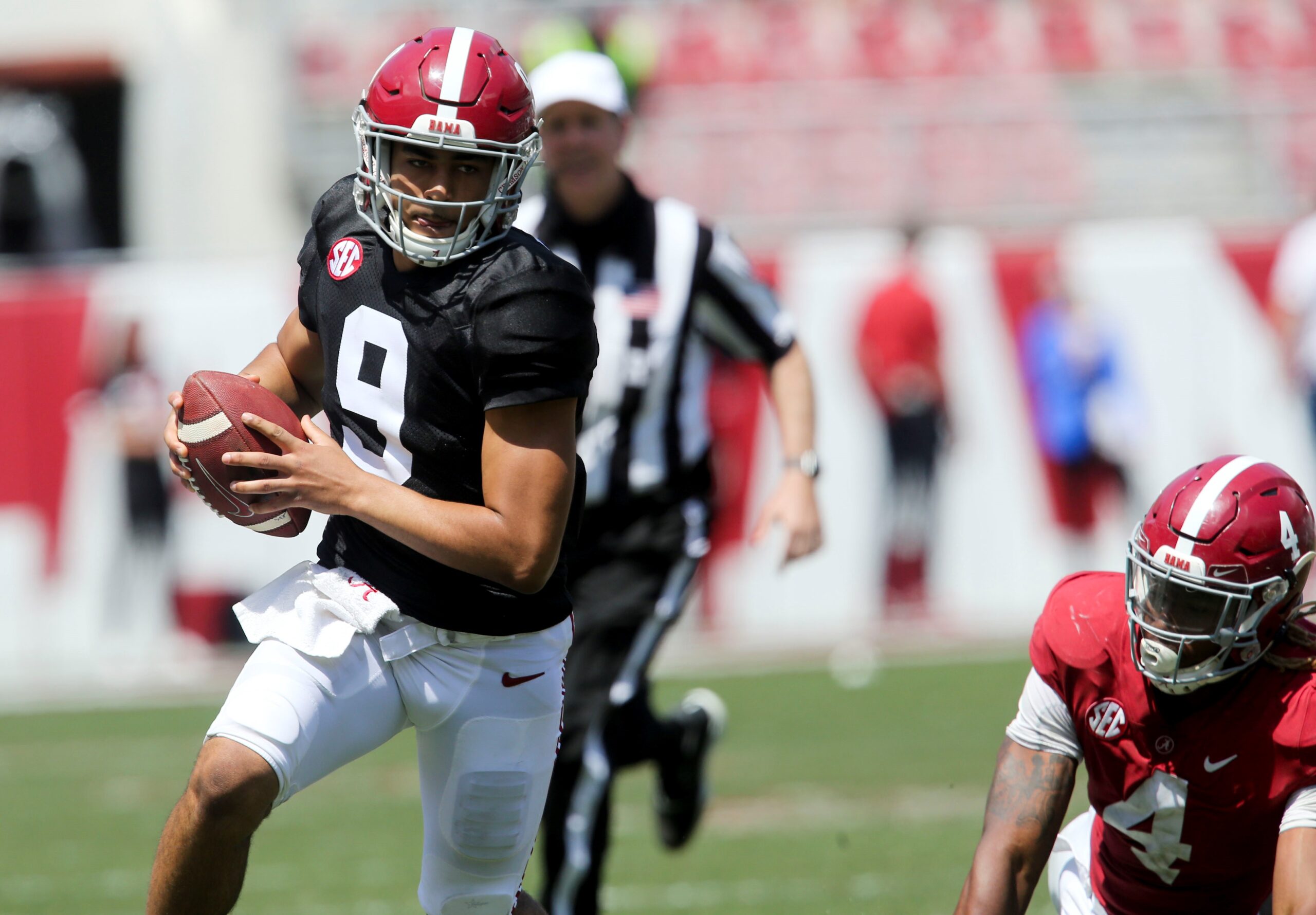 “I’ve been pleased with Bryce,” Saban said of Young, a second-year sophomore who has never started a college game. “We just have to get the people around him to play better.”
