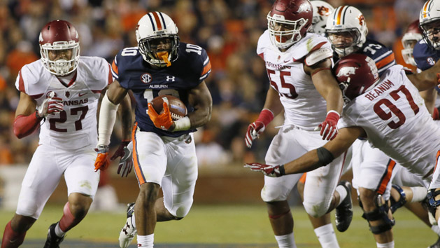 The Tigers (5-2, 3-1 SEC) rolled up a regular-season SEC-record 543 yards on the ground and 632 yards of total offense. Auburn’s defense, which recorded four sacks, limited the Razorbacks (5-3, 1-3) to 25 yards rushing, and held running back Rawleigh Williams III, who entered the game as the SEC’s leading rusher, to 22 yards on 13 carries.
