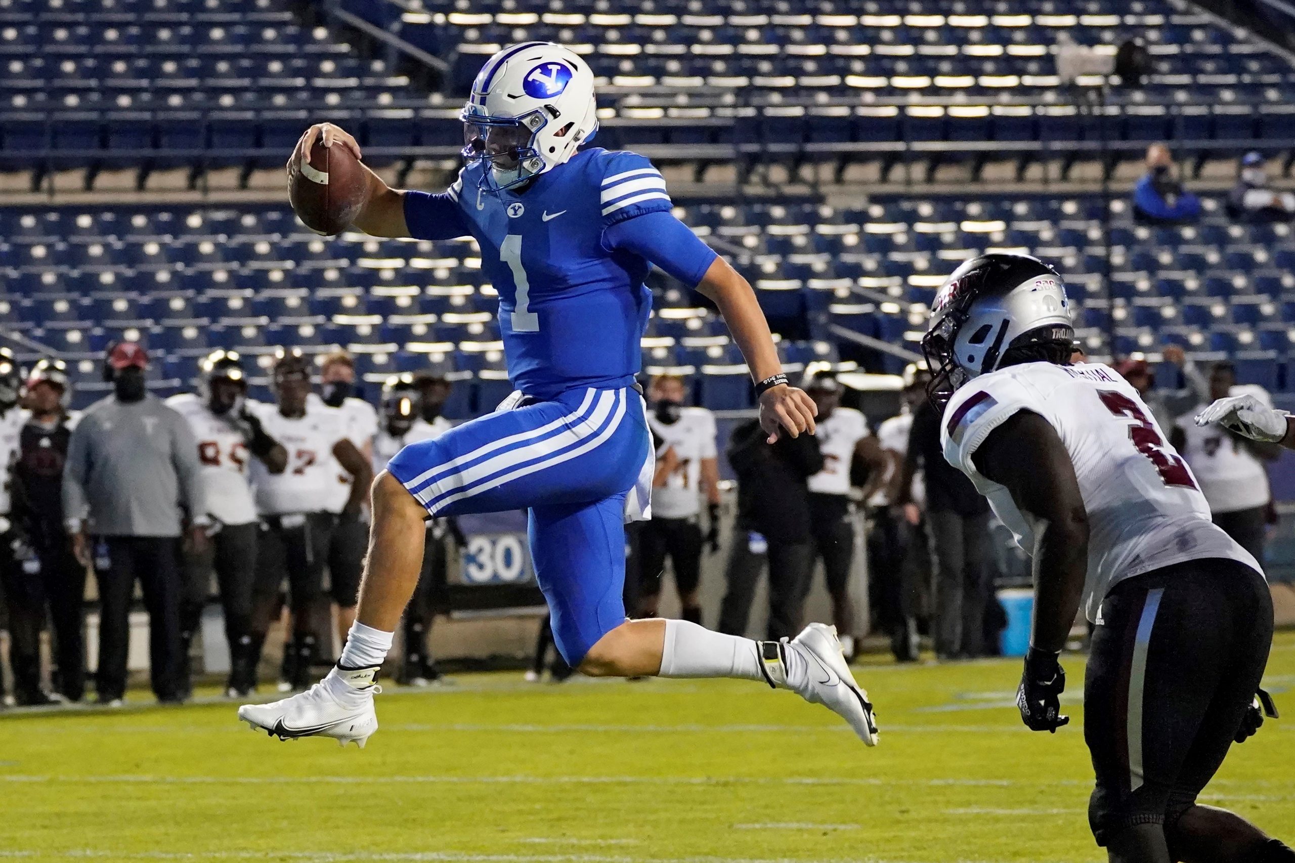 BYU quarterback Zach Wilson once was intent on winning lots of games on the blue turf in Boise.