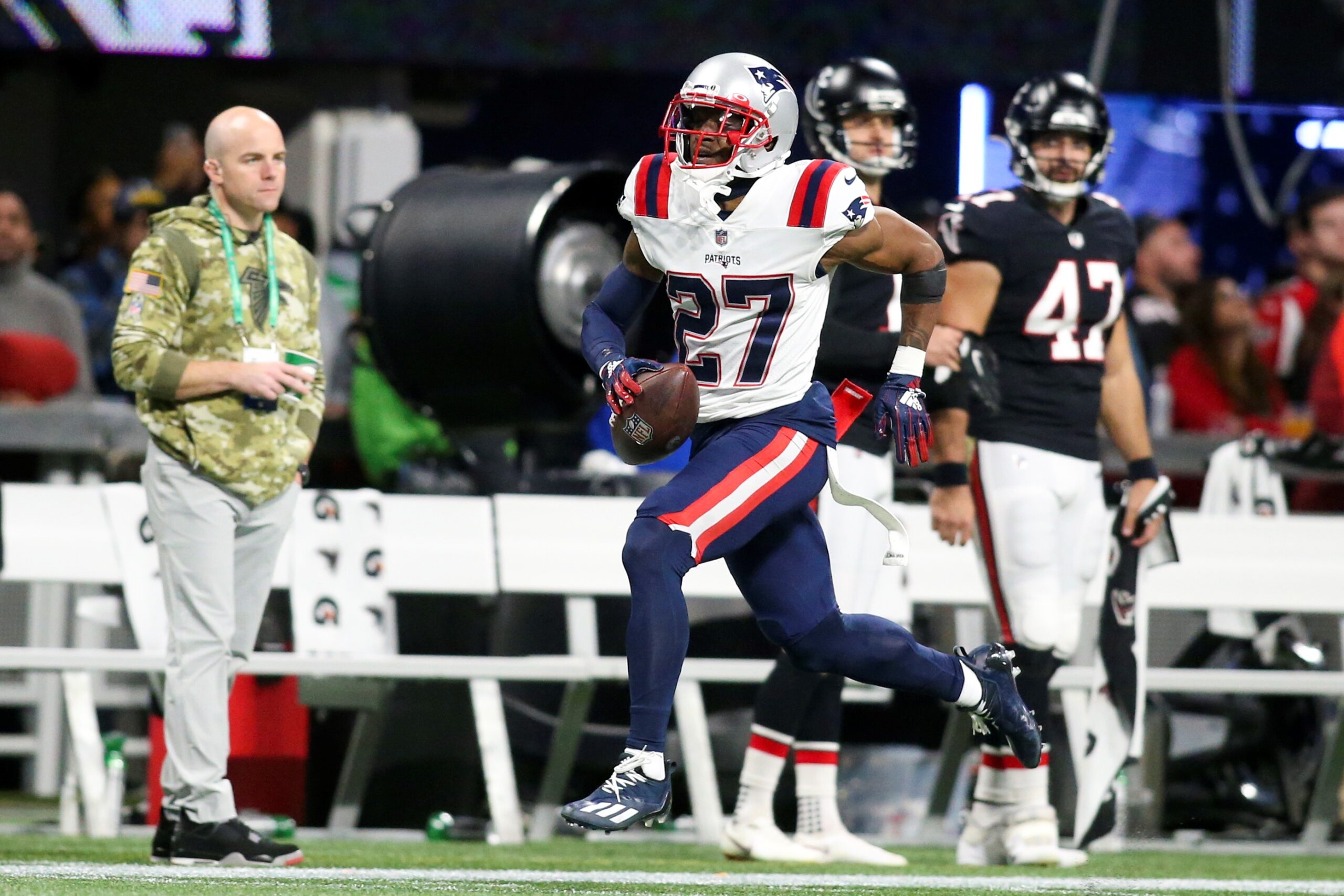 The New England Patriots signed him in 2018, and he appeared in 62 games (39 starts) over four seasons. He has 25 career interceptions and 53 passes defensed.
