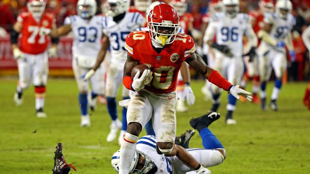 In Hill’s absence, Sammy Watkins emerged as the lead option for quarterback Patrick Mahomes and caught nine passes for 198 yards and three touchdowns against the Jaguars.
