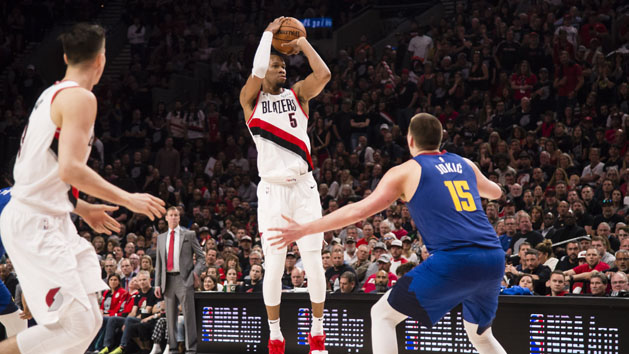 Hood was hurt in the third quarter when he stepped on the foot of Nuggets forward Torrey Craig as Craig was setting a pick. Hood went to the floor, was attended to and helped off the court and to the locker room with 5:35 remaining.