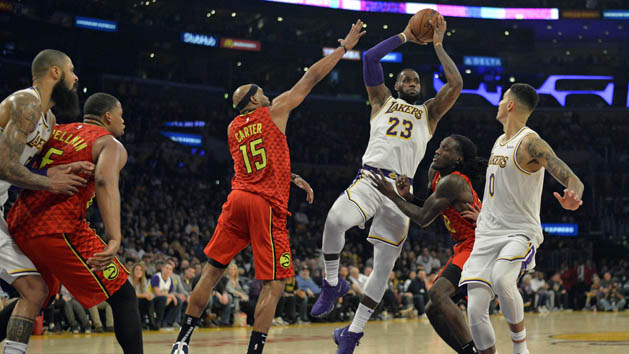 Los Angeles defeated the visiting Atlanta Hawks 107-106 on Sunday night after LeBron James dunked an offensive rebound for a one-point lead with 15 seconds left, and newly acquired center Tyler Chandler blocked a driving layup by Atlanta rookie point guard Trae Young to preserve the win.