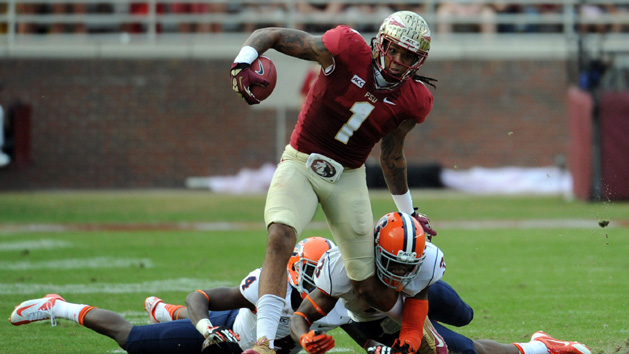 Whitfield took the handoff from Winston at and found the open field with one man to beat. Out of nowhere came a sprinting Winston, who laid a lick on Julian Whigham of Syracuse some 50 yards from the line of scrimmage to free Whitfield for the score.